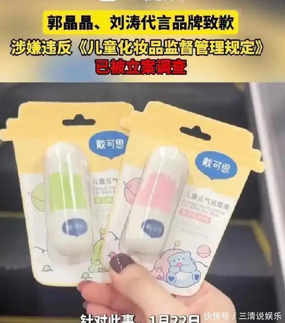 年关将至,娱乐圈八卦频出。女网红揭露男演员的绯闻已不足为奇,然而此次,当红男星杨洋也卷入了花边新闻的风波。与此同时,郭晶晶与刘涛这两位顶级明星代言的唇膏品牌也遭遇了信誉危机,而腾讯的一位女制片人更是因涉嫌非法侵占公司资产而被捕,种种事件皆令人瞠目结舌。郭晶晶、刘涛代言涉嫌造假冬日来临,众多宝妈们都会为孩子们精心挑选一支润唇膏。戴可思品牌凭借其响亮的广告宣传,在各大电商平台销量遥遥领先,成为众多家长的首选品牌。戴可思的儿童唇膏以“食品级润唇膏”为主要卖点,寓意即便孩子误食,也无须过分担忧。